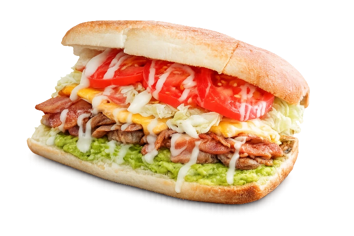 Una de las favoritas para quienes buscan más sabor en cada mordida. Lleva bistec, tocino, jamón, queso amarillo y queso blanco, con aguacate, lechuga, jitomate, chile y aderezo. Bien servida, llena de sabor y perfecta para los que disfrutan una torta intensa y bien antojada.